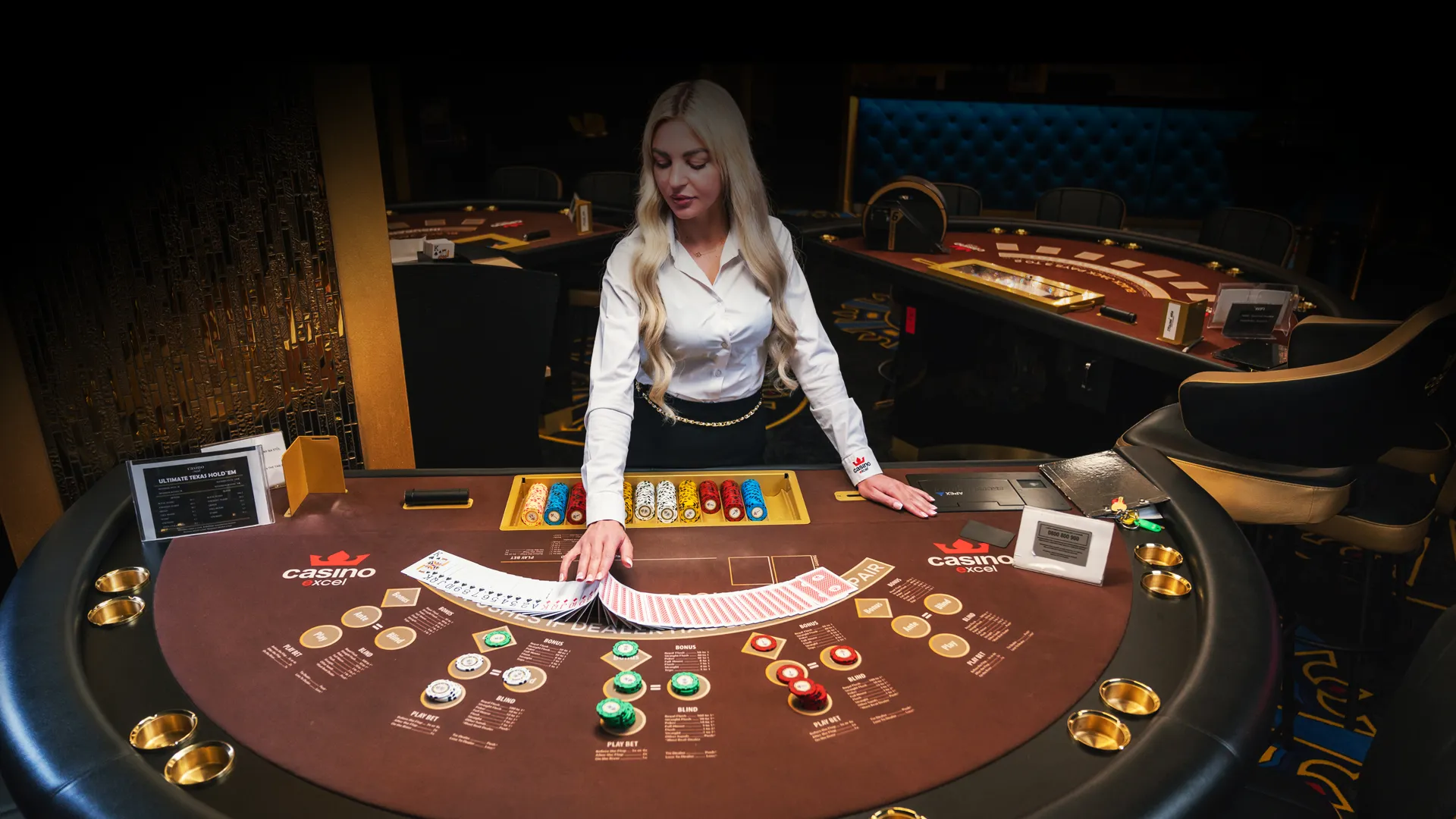 V moderných priestoroch casina excel zažijete skutočnú živú hru – americkú ruletu, poker, black jack, Texas hold´em poker či pravidelne organizované pokrové turnaje.